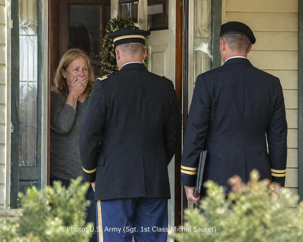 문을 여는 순간, 어머니는 숨이 멎는다. 정복을 입은 두 장교가 서 있다. 한 사람은 통보 장교(Casualty Notification Officer), 다른 한 사람은 군목이다. 전화도, 문자도 없었다. 이 나라에는 원칙이 있다. 가족이 세상보다 먼저 안다. 통보 장교가 입을 연다. 문장은 정해져 있다.