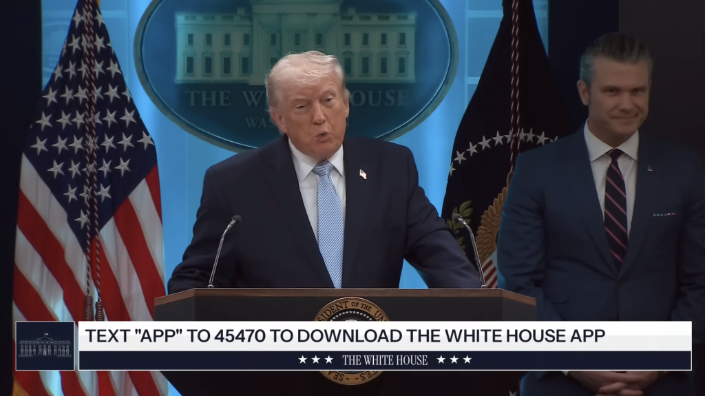 White House press briefing, April 6, 2026 (Photo: Official White House video screenshot)