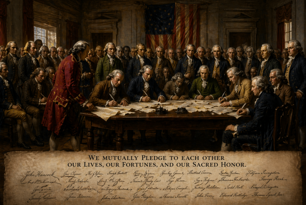 “We mutually pledge to each other our Lives, our Fortunes, and our sacred Honor.”