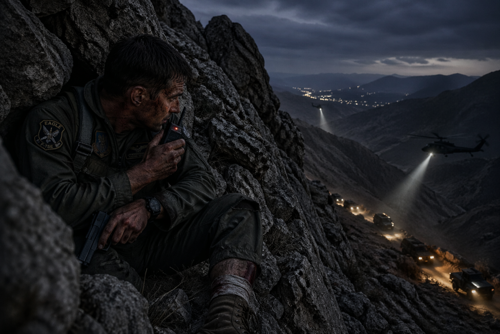 그는 이를 악물었다. 암호화된 무전기를 짧게 눌렀다. 그가 보낸 세 단어는 “God is good.” 길게 누르면 이란군이 먼저 신호를 잡는다. 미국의 자산이 먼저 잡기를 기도하며, 그는 다시 신호를 껐다.