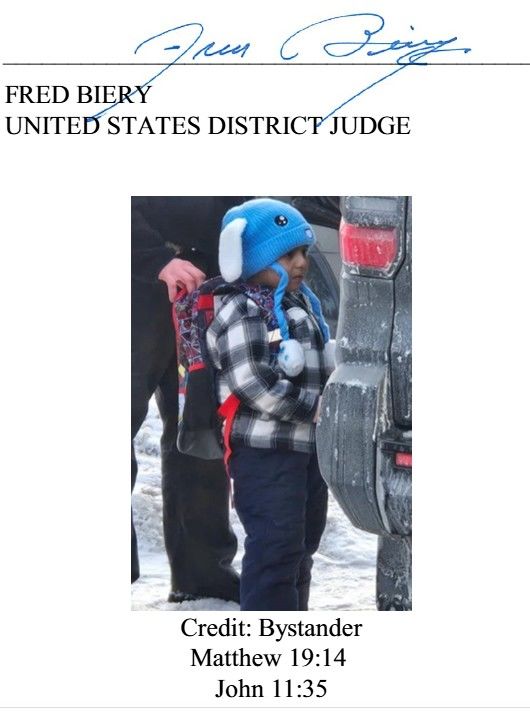 며칠 뒤, 연방 판사는 리엄과 아버지의 즉각 석방을 명령했다. 판사 프레드 비어리는 이례적으로 성경 구절을 인용해 판결문을 마무리했다.